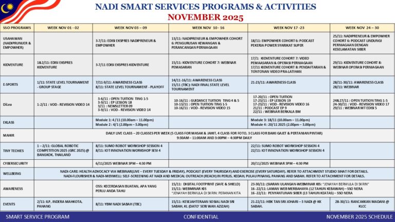 Tarikh : 1 November 2025 Masa : 10.00pagi – 3.30 petang Tempat : NADI Kg Batu 1, Kuala Ketil